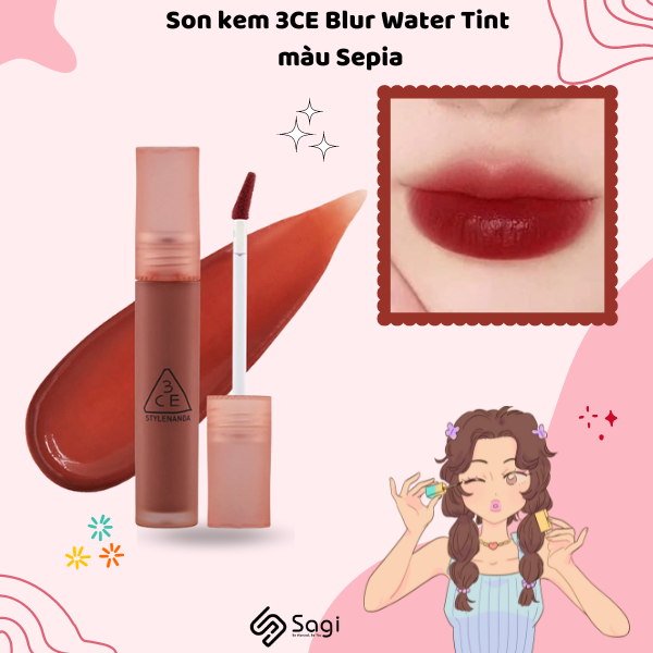 4. Son kem 3CE Blur Water Tint màu Sepia