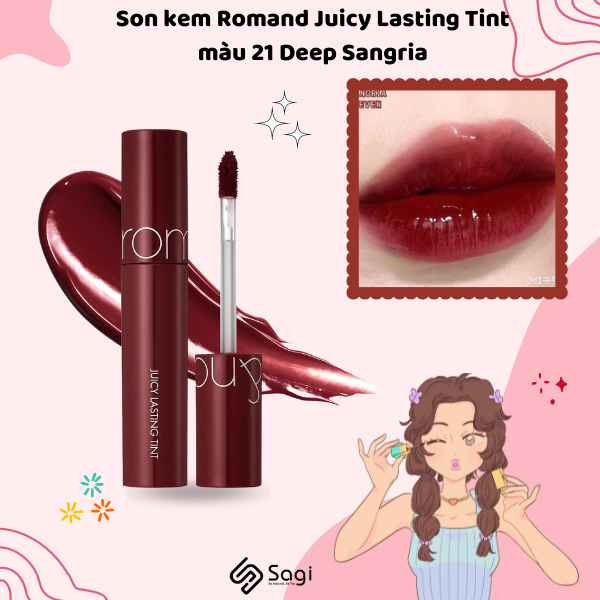 Mua hàng tại đây : Son kem Romand Juicy Lasting Tint màu 21 Deep Sangria