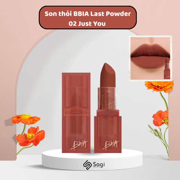 Son Lì Bbia Last Powder Lipstick No.02 Just You – Màu Đỏ Nâu Đất được biết đến là dòng son nhà Bbia. Một hãng son nổi tiếng đến từ Hàn Quốc. Đối với người Việt Nam thì Bbia là hãng son được yêu thích và tin tưởng.