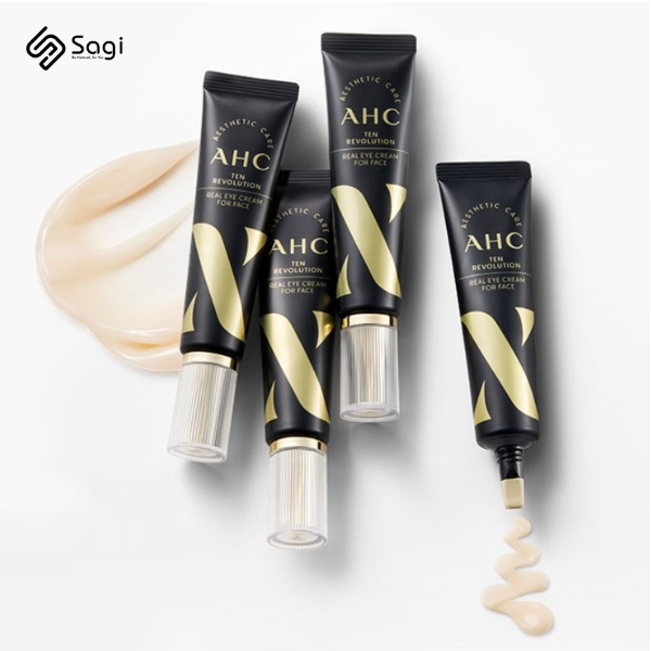 Kem Dưỡng Mắt AHC Ten Revolution Real Eye Cream For Face ra mắt vào năm 2022, phiên bản số 10 gây ấn tượng cực mạnh mẽ khi thiết kế màu đen vàng vô cùng sang chảnh. Chức năng chính của kem bao gồm dưỡng mắt và dưỡng trắng, xóa tan quầng thâm cũng như ngăn ngừa nếp nhăn hiệu quả. Trong thành phần còn chứa 25 loại peptide (thành phần độc quyền do AHC sản xuất) chống oxy hóa giúp da khoẻ hơn mỗi ngày. Bên cạnh đó chứa 9 loại Collagen và 17 loại thành phần axit amin nuôi dưỡng da, khôi phục và phục hồi sự đàn hồi cho da.