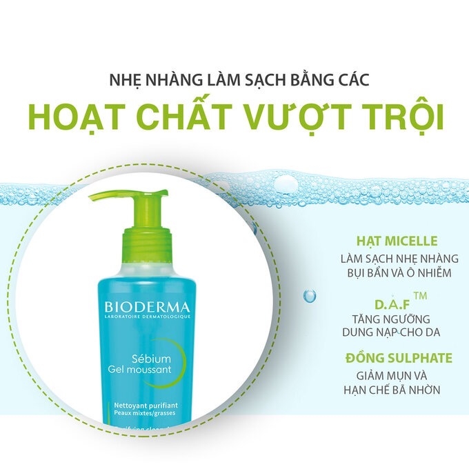 Gel Rửa Mặt Bioderma Dành Cho Da Dầu & Hỗn Hợp là sữa rửa mặt thanh lọc dịu nhẹ được thương hiệu dược mỹ phẩm Bioderma thiết kế chuyên biệt dành cho làn da dầu và hỗn hợp, giúp loại bỏ các tạp chất trên da, giải phóng bít tắc và làm thông thoáng lỗ chân lông, đồng thời kiểm soát dầu thừa, ngăn ngừa mụn hiệu quả mà vẫn duy trì pH tự nhiên trên da. Công thức đủ dịu nhẹ để sử dụng hằng ngày, giúp làm sạch hoàn toàn mà không hề gây kích ứng hay khô căng da, đảm bảo tôn trọng lớp màng ẩm tự nhiên của da (hydrolipid).