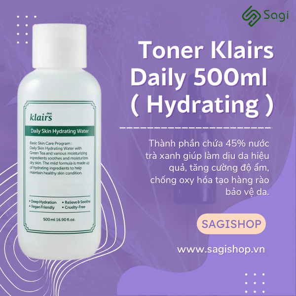 Mua hàng tại đây : Toner Klairs Trà Xanh Cấp Ẩm Làm Dịu Da 500ml Daily Skin Hydrating Water