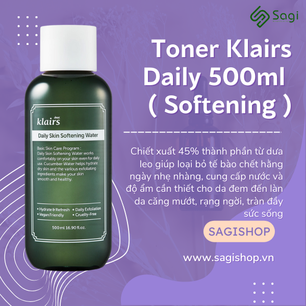 Mua hàng tại đây : Toner Klairs Tẩy Tế Bào Chết Làm Mềm Da 500ml Daily Skin Softening Water