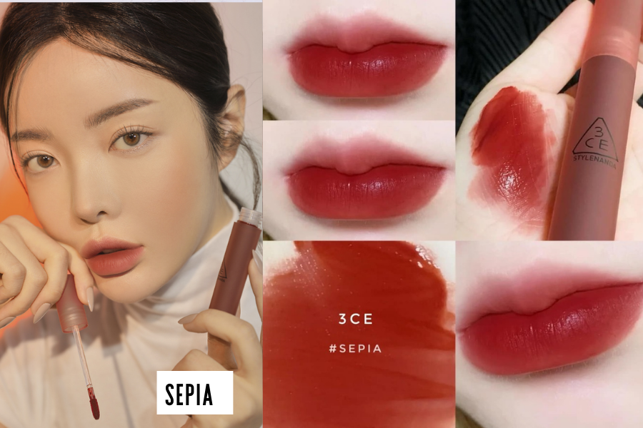 #Sepia là một màu đỏ gạch đậm sang chảnh và trẻ trung với sắc nâu rõ rệt, hợp với mọi tông da.