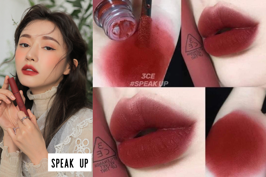1. Son kem 3CE Velvet Lip Tint: thuộc dòng kem lì nhà 3CE, chất son nhung mượt, có độ dưỡng, đánh mềm môi, bảng màu đa dạng cho phép nàng thỏa sức lựa chọn.