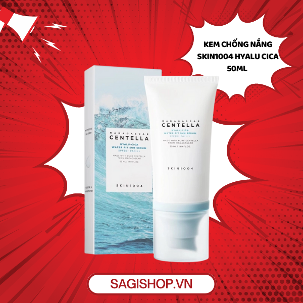 Kem chống nắng Skin1004 Madagascar Centella Hyalu-Cica Water-Fit Sun Serum SPF50+ PA++++ giúp bảo vệ da trước các tác động của tia UVA, UVB, bổ sung độ ẩm tăng cường hàng rào bảo vệ da dưới ánh nắng mặt trời.