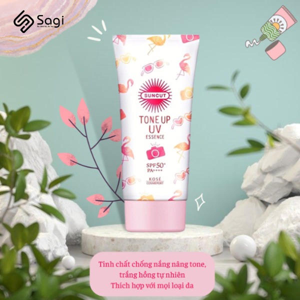 Kem chống nắng Kose Suncut tone up UV essence SPF50+ PA++++ 80g đến từ Nhật Bản có công dụng bảo vệ da, ngăn chặn những ảnh hưởng từ môi trường như tia UV. Ngăn ngừa bong tróc, khô da giúp làm đều màu da, đồng thời duy trì độ ẩm giúp da luôn được mịn màn, trắng hồng.