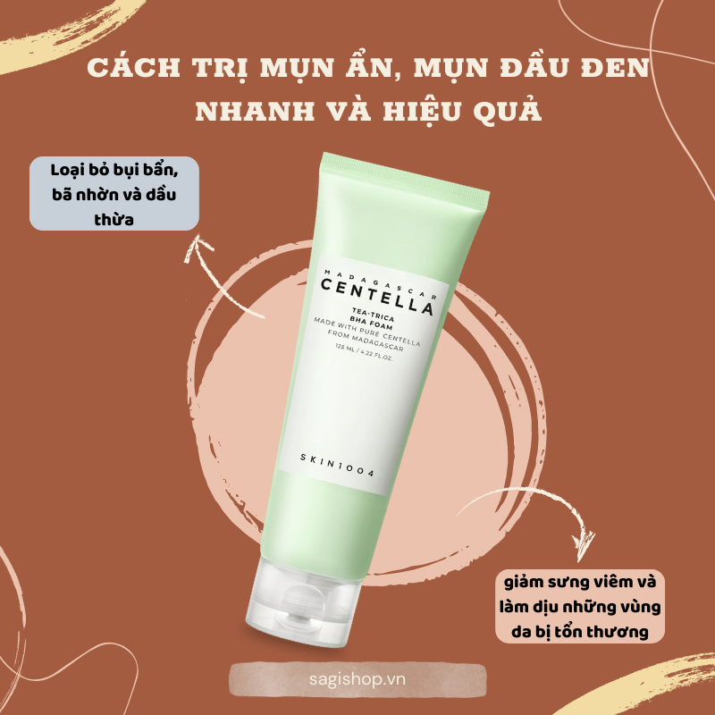 Sữa rửa mặt Centella Tea-Trica BHA có tác dụng loại bỏ bụi bẩn, bã nhờn và dầu thừa trên da nhưng vẫn cung cấp độ ẩm cần thiết, hạn chế cảm giác khô căng sau khi rửa mặt mà không gây bít tắc lỗ chân lông. Đặc biệt, sản phẩm còn có công dụng giúp giảm sưng viêm và làm dịu những vùng da bị tổn thương do mụn thích hợp để sử dụng hàng ngày giúp làm sạch da, mềm da, kháng viêm bảo vệ da một cách hiệu quả khỏi các tác nhân gây hại và ngăn ngừa mụn hiệu quả. Sữa rửa mặt cho da dầu mụn Skin1004 Madagascar Centella Tea-Trica BHA Foam chứa thành phần chính chiết xuất rau má Centella Asiatica Extract giúp làm sạch, kháng khuẩn, ngừa mụn, làm dịu da, đồng thời có khả năng kích thích quá trình tổng hợp collagen, kích hoạt quá trình phân chia tế bào, đẩy nhanh quá trình phục hồi da, giúp da mau lành vết thương và dưỡng ẩm nhẹ cho da.