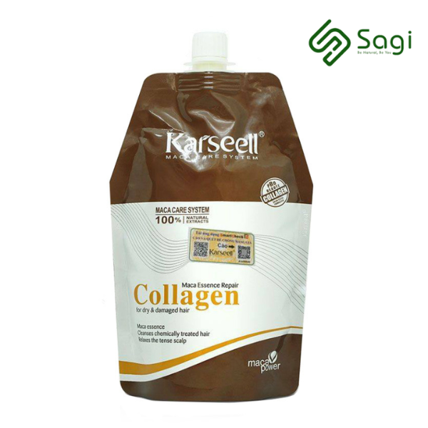 – Kem ủ phục hồi làm mềm tóc Karseell Collagen Maca Power 500ml giúp cho tóc mềm mượt hơn, bóng hơn và phục hồi hư tổn nhanh hơn.