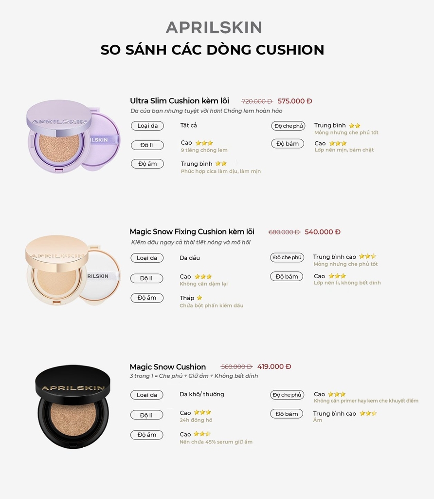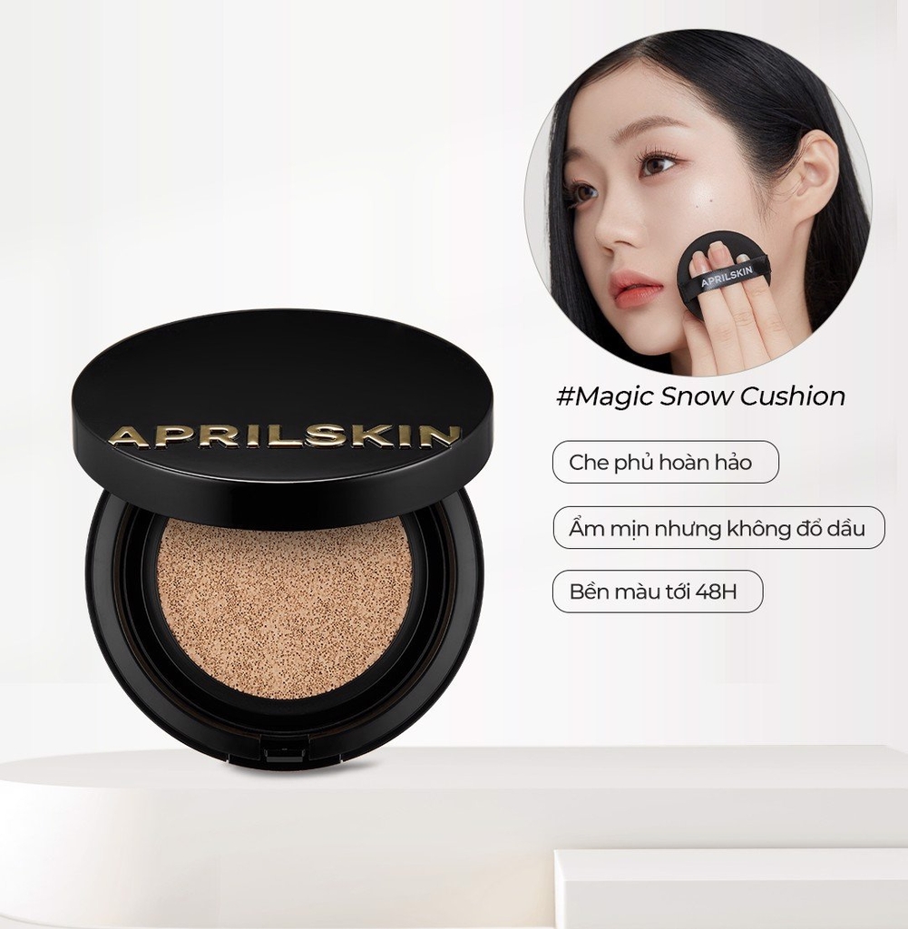 Cushion Aprilskin Magic Snow là sản phẩm cushion phiên bản mới nhất đến từ thương hiệu mỹ phẩm April Skin của Hàn Quốc, giúp biến hóa làn da khuyết điểm thành làn da đẹp ngay lập tức, có thể thay thế toàn bộ bước trang điểm từ kem lót, kem nền, phấn phủ, kem chống nắng chỉ trong một bước.