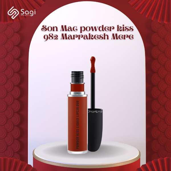 Dòng son kem lì MAC Powder Kiss Liquid Lipcolour trình làng và ngay lập tức gây sốt. Một trong những cái tên gây bấn loạn đến từ BST này là son MAC 982 Marrakesh-Mere mang tông màu đỏ nâu đất là một thỏi son mà bất kì cô gái hệ mê son nào cũng không thể thiếu cho mình.