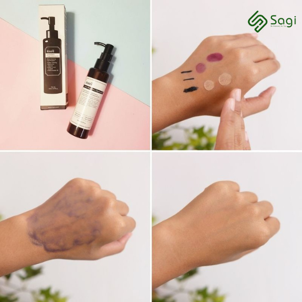 - Thành phần chiết xuất từ dầu thực vật thiên nhiên giúp tẩy sạch mọi lớp trang điểm kể cả kem nền, phấn phủ, các loại mascara chống thấm nước hay thậm chí son lì lâu trôi.