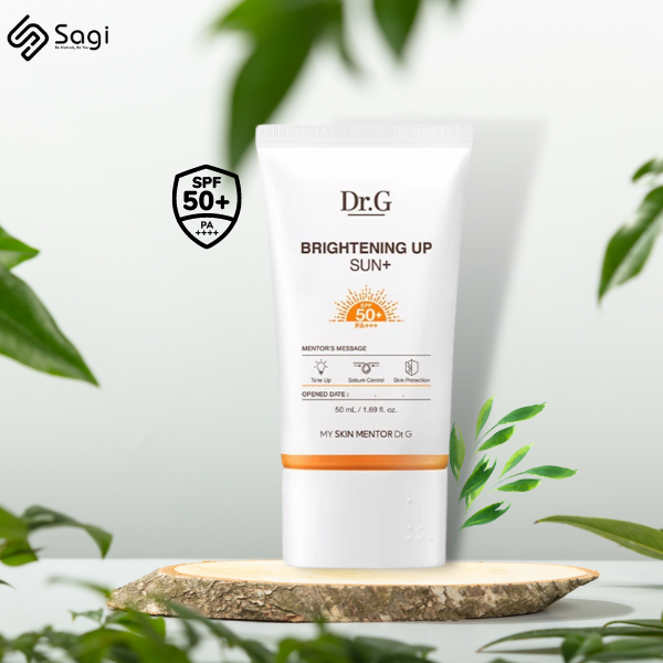 Kem chống nắng dưỡng sáng da Dr.G Brightening Up Sun SPF50+ PA+++ là dòng kem chống nắng thế hệ lai với 2 màng lọc chống nắng vật lý gồm ZinC Oxide (4.9%) và Titanium Dioxide (2.9%) giúp ngăn chặn tia UV và bảo vệ da khỏi nám sạm, lão hóa. Cùng 7% Octinoxate - Màng lọc chống nắng hóa học giúp hấp thụ và phân hủy tia UVB có hại cho da, giảm nguy cơ tổn thương do nắng. Từ đó, Dr.G Brightening Up Sun SPF50+ đem lại hiệu quả chống nắng với 5 lớp bảo vệ: Chống ánh sáng xanh, tia hồng ngoại, ô nhiễm và tia UVA, UVB. Đồng thời kem chống nắng này còn có khả năng nâng tông tự nhiên và kiềm dầu hiệu quả suốt 8h. Sản phẩm phù hợp với mọi loại da, đặc biệt là da dầu, da nhạy cảm.