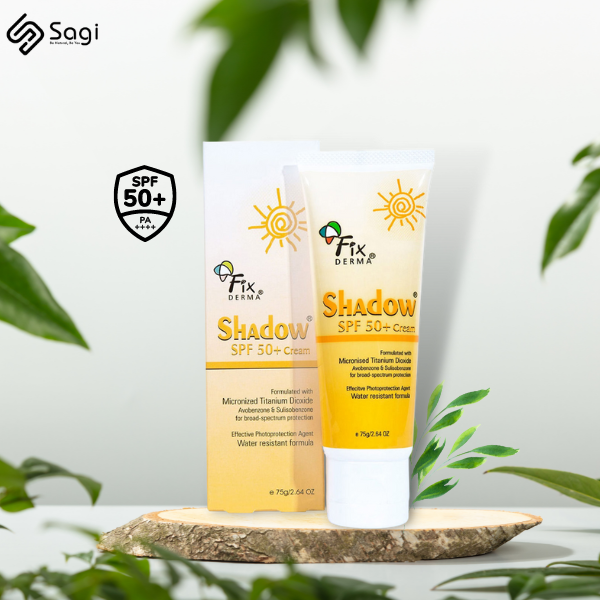 Kem Chống Nắng Fixderma Shadow SPF 50+ 75g là sản phẩm chống nắng dành cho da mặt & toàn thân đến từ thương hiệu mỹ phẩm Fixderma (USA). Công thức kết hợp màng lọc chống nắng vật lý và hóa học giúp cung cấp độ bảo vệ da rất cao trước tác động của các tia có hại đến từ ánh nắng mặt trời. Đồng thời, sản phẩm có đặc tính chống thấm nước tốt, kết cấu mỏng nhẹ không nhờn rít da cùng khả năng nâng tone nhẹ nhàng.
