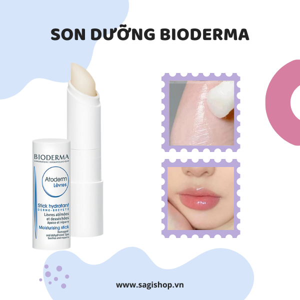 Son dưỡng Bioderma Atoderm Moisturising Stick - Đây là loại son dưỡng không màu với chiết xuất từ bơ hạt mỡ cực kỳ hiệu quả để dưỡng ẩm cho môi. Với thành phần chứa inci mineral oil, tocopheryl acetate, microcrystalline wax,... son dưỡng Bioderma Atoderm Moisturising Stick sẽ giúp đôi môi của bạn luôn hồng hào, căng mọng và giảm thiểu tình trạng khô tróc.