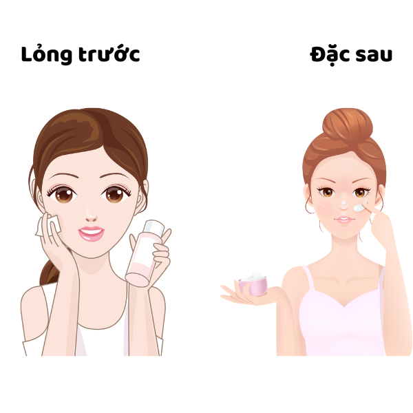 Đây là nguyên tắc thường áp dụng với các sản phẩm dưỡng ẩm, khi trên thị trường có quá nhiều loại dưỡng ẩm khác nhau khiến chị em loạn cả mắt. Với kiểu dưỡng da của Châu Âu thì các sản phẩm dưỡng ẩm hầu như chỉ xuất hiện với một vài tên gọi như toner, serum dưỡng ẩm,.. nhưng ở Châu Á, nhất là Hàn Quốc và Nhật Bản thì có vô vàn các loại như essence, lotion, first serum,…
