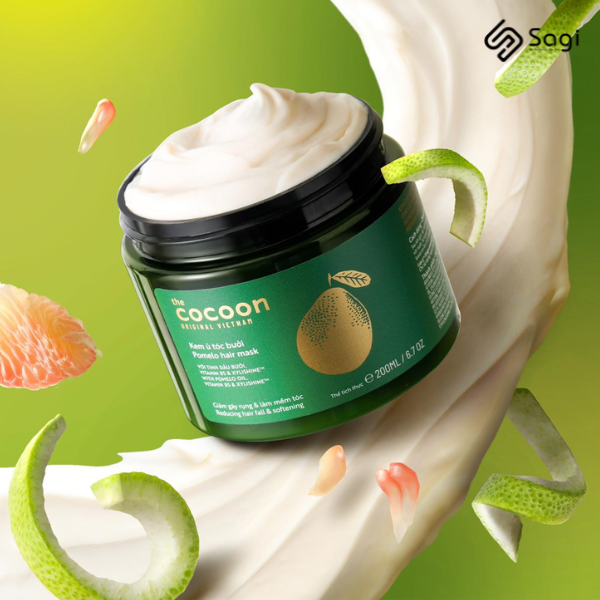 Kem Ủ Tóc Bưởi Cocoon Giảm Gãy Rụng Và Làm Mềm Tóc 200ml với thành phần chính là tinh dầu bưởi truyền thống Việt Nam, Vitamin B5 và Xylishine™ giúp phục hồi dần sức khoẻ mái tóc, tăng cường mọc tóc và giảm gãy rụng hiệu quả, mang lại sự mềm mại và chắc khoẻ cho sợi tóc.