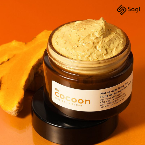 Mặt Nạ Nghệ Hưng Yên Cocoon Giúp Da Rạng Rỡ Mịn Màng với thành phần chính tinh bột nghệ từ củ nghệ ở vùng đất Hưng Yên giàu curcuminoid kết hợp cùng chiết xuất yến mạch, hạt óc chó và vitamin B3 cung cấp dưỡng chất giúp cải thiện bề mặt da sần sùi, thô ráp, lấy đi các tế bào chết nhẹ nhàng mang lại làn da sáng mịn, đều màu, ẩm mượt, rạng ngời.