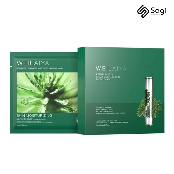 Mặt nạ giấy Weilaya Grass được chiết xuất từ một loại cỏ có sức sống mãnh liệt vượt qua 300 triệu năm để tồn tại đến ngày nay cỏ phục sinh Nam Phi hay còn gọi là cỏ Phượng Hoàng. Khi không khí khô gần như hoàn toàn.. Mười năm thiếu nước và khô héo, chỉ cần một giọt nước là có thể phục hồi sức sống trong vòng 24 giờ, tích nước trở lại, phục hồi vẻ khỏe mạnh và căng mọng chỉ trong vài giờ.