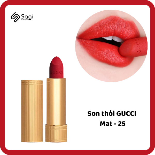 Mua hàng tại đây : Son Gucci Rouge À Lèvres Voile Mat 25 Goldie Red