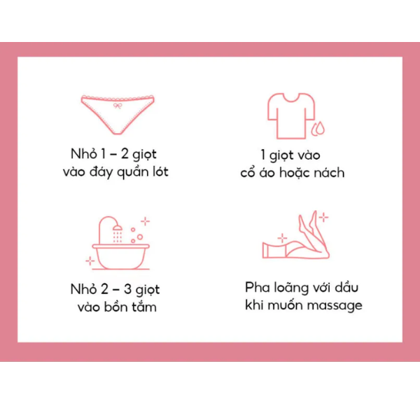- Cho 1-2 giọt vào quần lót trong thời kỳ kinh nguyệt