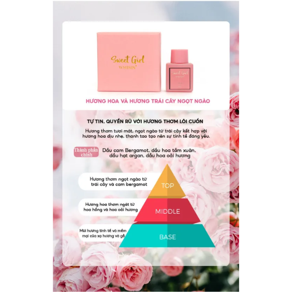 - Khử mùi hôi vùng kín: Nước hoa Whisis Sweet Girl Inner có mùi thơm ngọt ngào, quyến rũ, giúp khử mùi hôi vùng kín hiệu quả, mang lại cảm giác tự tin cho người sử dụng.