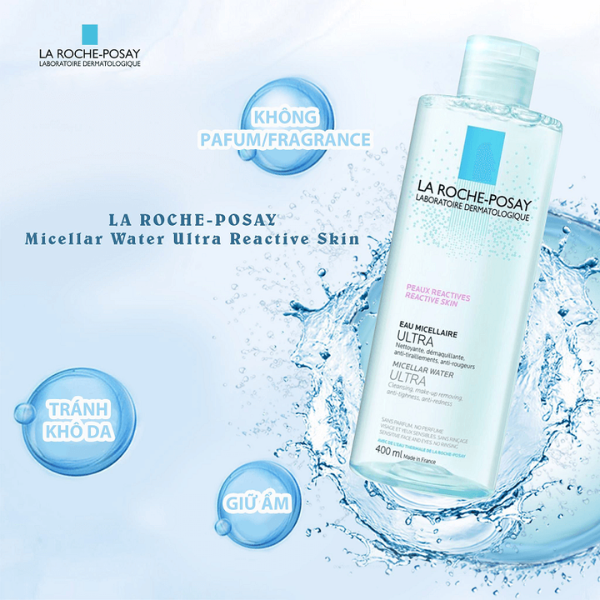 - Nước tẩy trang La Roche Posay EauMicellar Ultra Peaux Reactive hoàn toàn lành tính không paraben, không chất tạo màu, không cồn, không chứa xà phòng