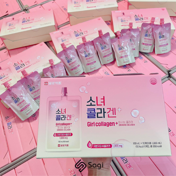Nước Uống Girl Collagen Hàn Quốc Dạng Túi 10 Gói mẫu mới. Nước uống Girl Collagen Hàn Quốc – Nước uống tăng cường sức khỏe, trẻ hóa làn da bổ sung collagen với hàm lượng lớn tới 1000mg, cùng hàng loạt các thành phần làm đẹp sáng giá như hyaluronic acid, vitamin C, coramide, cung cấp năng lượng cho cơ thể khỏe mạnh, đánh bật mọi dấu hiệu lão hóa.
