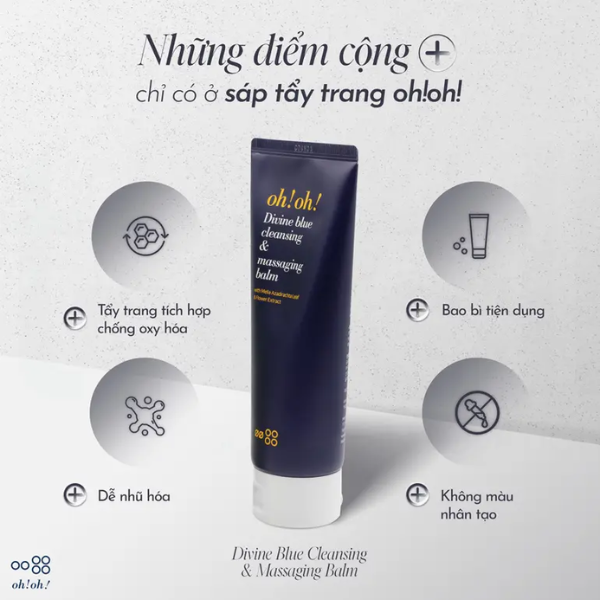 Sáp Tẩy Trang oh!oh! Làm Sạch Sâu, Trẻ Hóa Da 150ml là sản phẩm tẩy trang mặt dạng sáp đến từ thương hiệu mỹ phẩm oh!oh! của Hàn Quốc, giúp nhẹ nhàng loại bỏ lớp makeup, bụi bẩn và tạp chất mà không làm khô căng bề mặt da. Đặc biệt, công thức sản phẩm có chứa chiết xuất Melia Azadirachta siêu giàu chất chống oxy hóa giúp trung hòa các gốc tự do gây hại, từ đó bảo vệ và làm dịu làn da trước các tác nhân gây hại từ môi trường. Ngoài ra, chiết xuất tảo đỏ Corallina Officinalis trong bảng thành phần nổi bật với đặc tính nhẹ nhàng loại bỏ tế bào chết, mang lại một làn da sáng, đều màu và săn chắc hơn.
