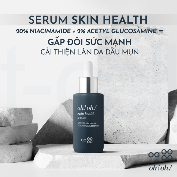 oh!oh! Skin Health Serum được biết tới là một loại serum dưỡng da giúp cải thiện vẻ đẹp rạng rỡ cho làn da, làm sáng các vùng da xỉn màu, sạm, …Sản phẩm phù hợp để sử dụng cho mọi loại da, kể cả da dầu mụn, hỗ trợ quá trình điều tiết bã nhờn, kháng viêm, điều trị mụn.