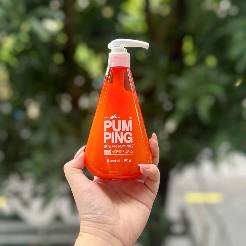 - Được tinh chế từ các loại trái cây họ Cam, kem đánh răng Pumping giúp chăm sóc răng miệng và giúp trắng răng. Thiết kế bao bì độc đáo kem đánh răng đầu tiên và duy nhất tại Việt Nam có thiết kế chai vòi.