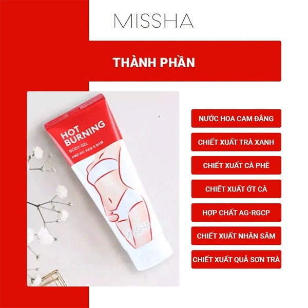 - Missha Hot Burning Perfect Body Gel cũng giúp cơ thể săn chắc và người dùng sẽ tự tin hơn với vóc dáng của mình.