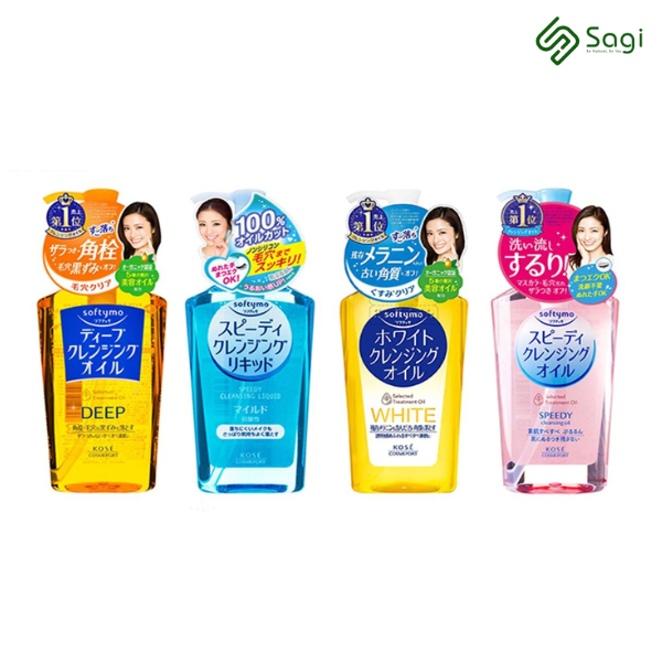 - Dầu tẩy trang trắng da Kose Softymo White Cleansing Oil 230ml (chai cam): được tạo ra bởi cái tên “White” thì ngoài việc tẩy sạch da, sản phẩm này còn giúp cho da thêm trắng hồng, sáng mịn tự nhiên. Kết hợp với nhiều thành phần tự nhiên, giàu vitamin và khoáng chất đẩy hiệu quả tẩy cao lên cao và nuôi dưỡng da một cách an toàn.