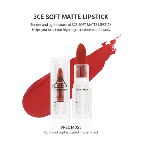 Mua hàng tại đây : 3CE Soft Matte màu Red Muse màu đỏ cam cháy