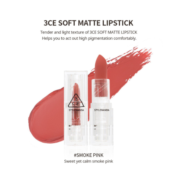 Mua hàng tại đây : 3CE Soft Matte màu Smoke Pink màu hồng đất pha cam