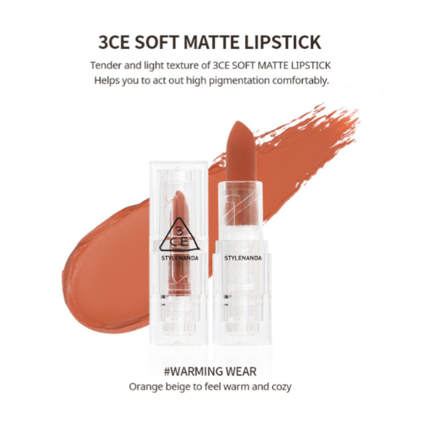 Mua hàng tại đây : 3CE Soft Matte màu Warming Wear màu cam ánh vàng