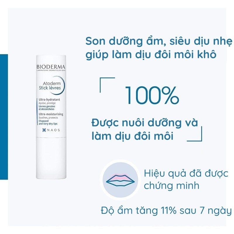 Son dưỡng môi Bioderma Atoderm Levres Stick Hydratan hỗ trợ giữ ẩm thường xuyên, ngừa khô môi do môi trường, khí hậu, phù hợp với khí hậu nhiệt đới nước ta và đặc biệt là vào những ngày mùa đông hanh khô. Sản phẩm phù hợp cho cả nam và nữ, cả những làn môi nhạy cảm của trẻ nhỏ, mang đến đôi môi trở nên mềm mại.