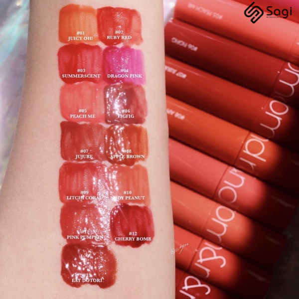 Bảng màu Son Tint Lì Romand Juicy Lasting Tint