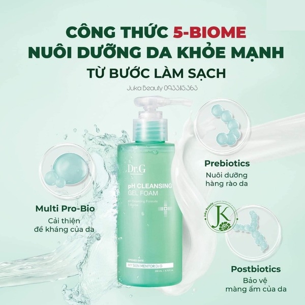 Sữa Rửa Mặt Dạng Gel Tạo Bọt Dịu Nhẹ, Làm Sạch Sâu, Cấp Ẩm, Cho Da Nhạy Cảm Dr.G pH Cleansing Gel Foam là sữa rửa mặt thuộc thương hiệu Dr.G với thành phần lên men và chiết xuất từ thảo dược giúp làm dịu da, có khả năng làm sạch bụi mịn và kem chống nắng hiệu quả mang lại cho bạn làn da khỏe mạnh và thông thoáng, mịn màng.
