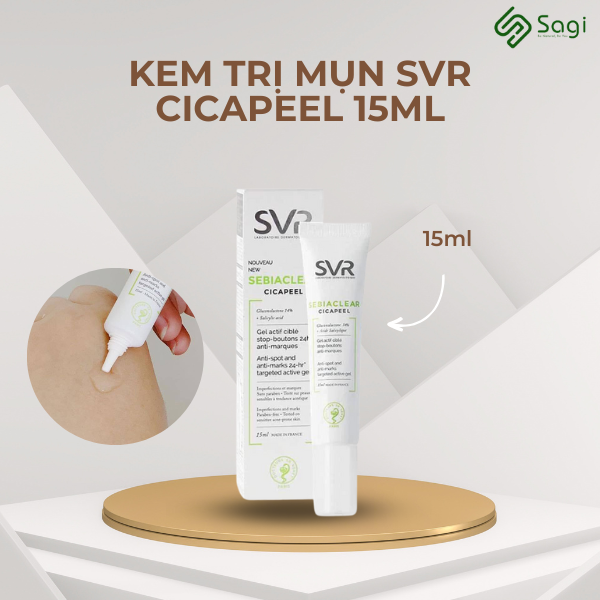 Bụi bẩn, thay đổi thời tiết, stress hay trang điểm thường xuyên nhưng lại không tẩy trang đúng cách đều có thể là nguyên nhân khiến bạn dễ nổi mụn. Nếu không chăm sóc da đúng cách, tình trạng này sẽ ngày càng tồi tệ và để làm nhiều vết thâm thiếu thẩm mỹ. Giờ đây, nổi lo lắng này của bạn sẽ được giảm đi phần nào với sản phẩm Gel Chấm Mụn SVR Sebiaclear Cicapeel 15ml đến từ Sagi . Sản phẩm có kết cấu dạng gel mỏng nhẹ, dễ dàng thẩm thấu nhanh vào da và không để lại cảm giác nhờn rít. Sau khi bôi lên vùng da bị mụn, gel sẽ phát huy tác dụng giúp làm giảm mụn và hạn chế sự hình thành các nốt mụn mới. Sử dụng sản phẩm này thường xuyên còn giúp làm mờ các vết thâm và giữ lỗ chân lông tại vùng da mụn luôn được thông thoáng.