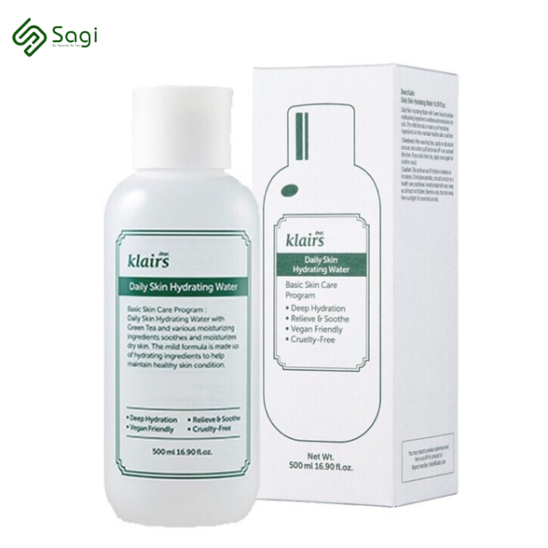 - Klairs Daily Skin Hydrating Water là sản phẩm hoàn hảo cho làn da khô và thiếu nước. Công thức với 45% nước trà xanh để cung cấp độ ẩm và giúp củng cố hàng rào độ ẩm tự nhiên của da.
