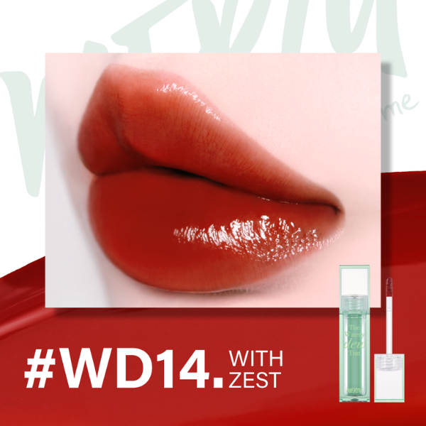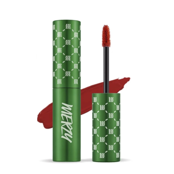 Son kem Merzy Dew Tint màu 14 có màu đỏ lạnh ánh cam cực kỳ quyến rũ