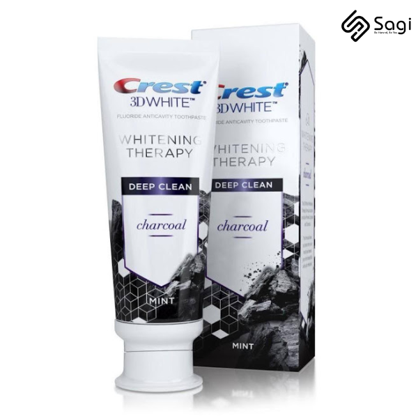 - Crest 3D White Whitening Therapy Charcoal Deep Clean chứa Fluoride giúp ngăn ngừa sâu răng.