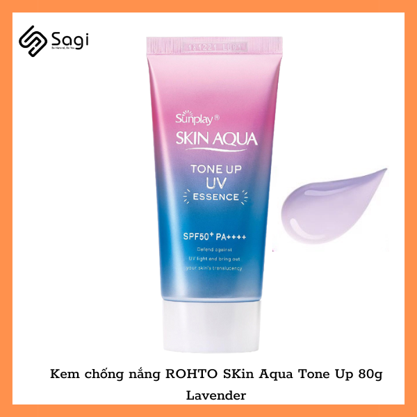 Kem chống nắng ROHTO SKin Aqua Tone Up 80g Lavender có màu Tím giúp nâng tone da vàng, da sạm màu, tối màu.
