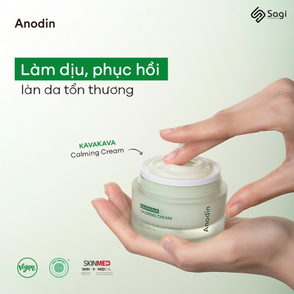 Kem dưỡng làm dịu và cấp ẩm Anodin Kava Kava Calming có xuất xứ từ Hàn Quốc, là dòng dược mỹ phẩm thuần chay dành cho mọi loại da, đặc biệt là da nhạy cảm, da treatment được bác sĩ khuyên dùng. Được chiết xuất từ các thành phần tự nhiên lành tính, sản phẩm có công dụng làm dịu, phục hồi, cấp ẩm và củng cố hàng rào bảo vệ da. Đồng thời giúp kháng viêm, giảm sưng và ngăn ngừa kích ứng.