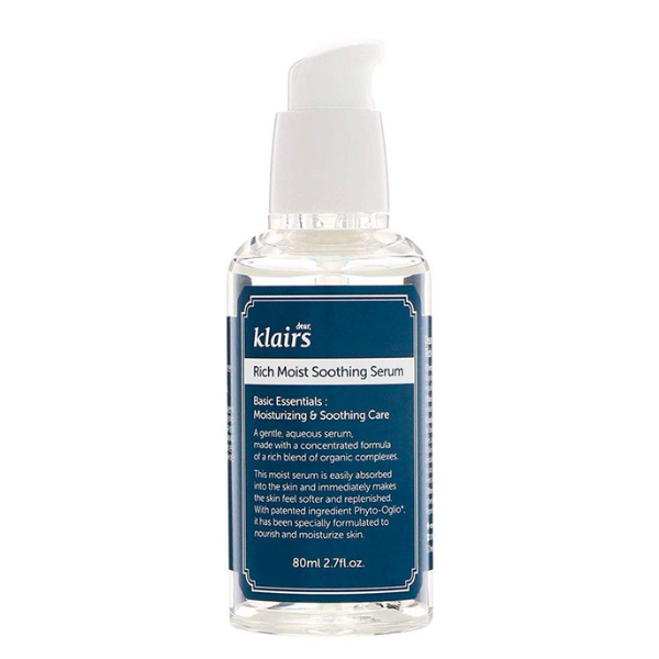 Klairs Rich Moist Soothing Serum thuộc thương hiệu nổi tiếng về mỹ phẩm dưỡng da hàng ngày lành tính Klairs đến từ Hàn Quốc. Serum rau má và sodium ascorbyl phosphate có tác dụng kháng khuẩn, dưỡng ẩm và làm chậm quá trình lão hóa da.