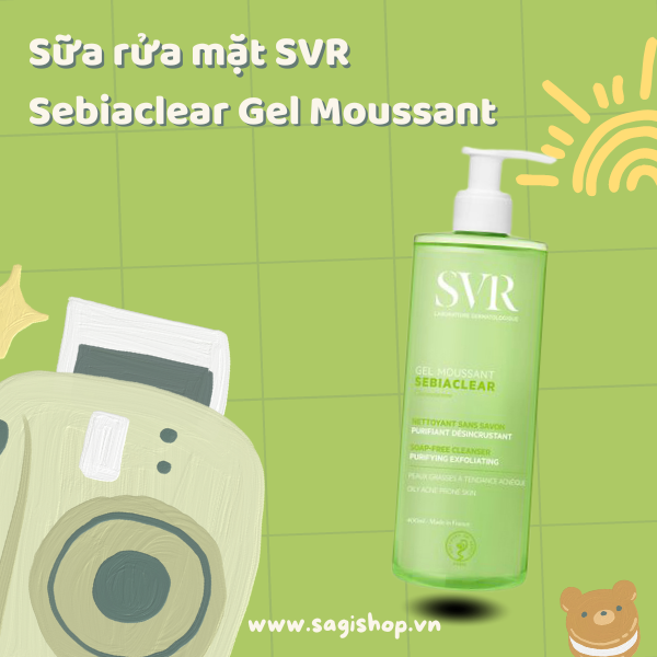 SVR Sebiaclear Gel Moussant có khả năng làm giảm sưng, viêm và tiêu sừng, ngoài ra còn giảm khuẩn và điều tiết bã nhờn, những nguyên nhân gây bít tắc lỗ chân lông và hình thành mụn.