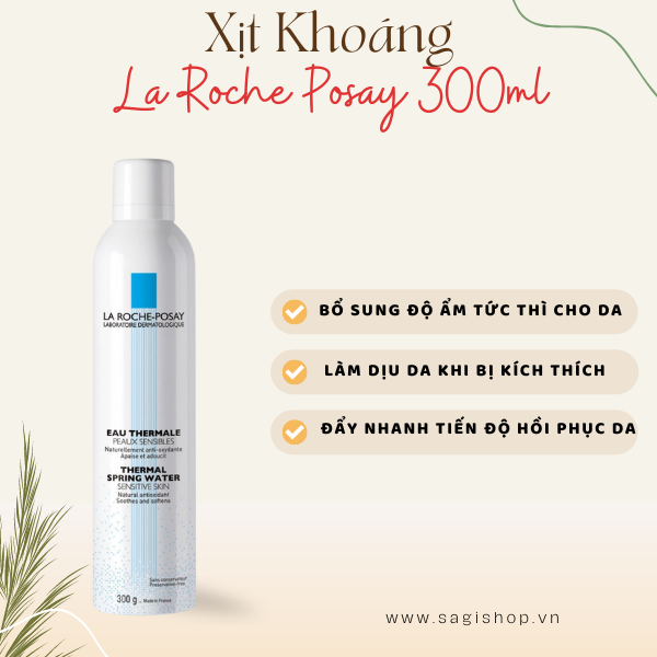 - Nước khoáng thiên nhiên La Roche-Posay có tác dụng làm dịu da và giảm kích ứng.