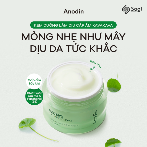 Kem dưỡng làm dịu và cấp ẩm Anodin Kava Kava Calming có xuất xứ từ Hàn Quốc, là dòng dược mỹ phẩm thuần chay dành cho mọi loại da, đặc biệt là da nhạy cảm, da treatment được bác sĩ khuyên dùng. Được chiết xuất từ các thành phần tự nhiên lành tính, sản phẩm có công dụng làm dịu, phục hồi, cấp ẩm và củng cố hàng rào bảo vệ da. Đồng thời giúp kháng viêm, giảm sưng và ngăn ngừa kích ứng.