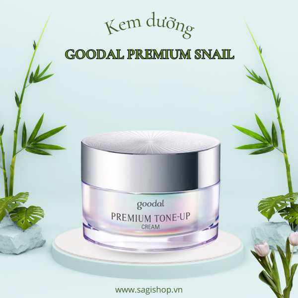Kem dưỡng trắng và nâng tone Goodal Premium Snail là kem dưỡng nâng tông thuộc thương hiệu Goodal giúp che phủ lỗ chân lông và hiệu chỉnh làn da tối màu mang đến hiệu ứng trắng sáng tự nhiên với các thành phần như tơ tằm, sữa ong chúa, ngọc trai và tơ tằm.